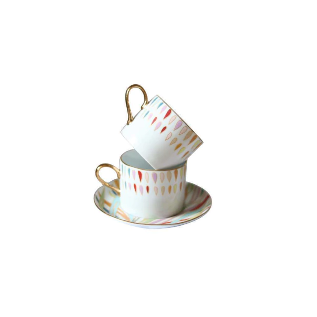 Xícara de Chá em Porcelana Aquarela com filete em Ouro 24k